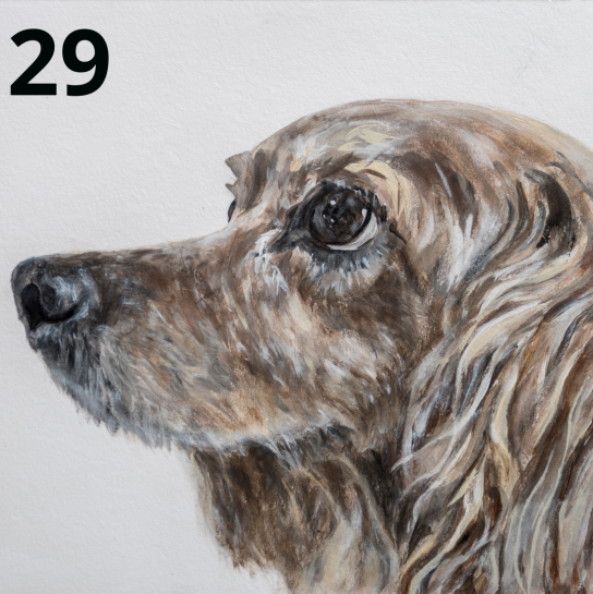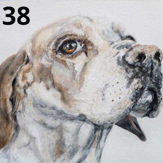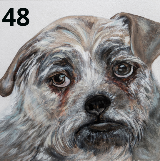 de schilderijen zijn gemaakt met Acrylverf op geprepareerd papier en gemaroufleerd op paneel in totaal 60 werken van 30 x 35cm